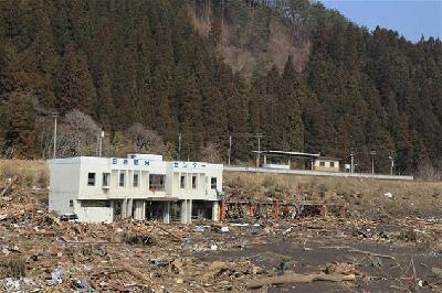 下にあった観光案内所を兼ねたコンクリート製の駅舎は何とか残ったものの、他の建物はすべて流されています。