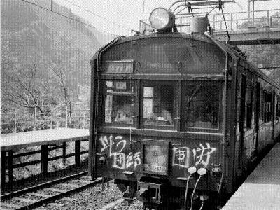 金属車体に更新された旧型国電の中でも美しい車両でしたが、ご覧のような落書き。