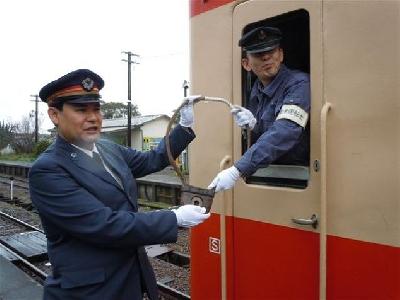 国鉄時代の駅長さんの格好をして、キハ52の到着を待ちうけるという、たったこれだけのことですが、私にとっては懐かしくて楽しい「一分の一」の情景なのです。