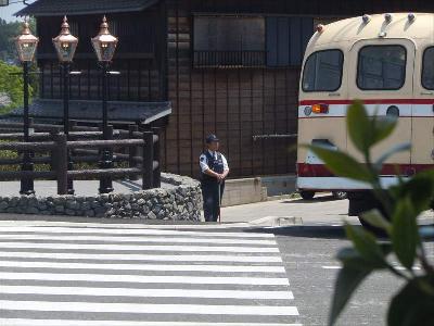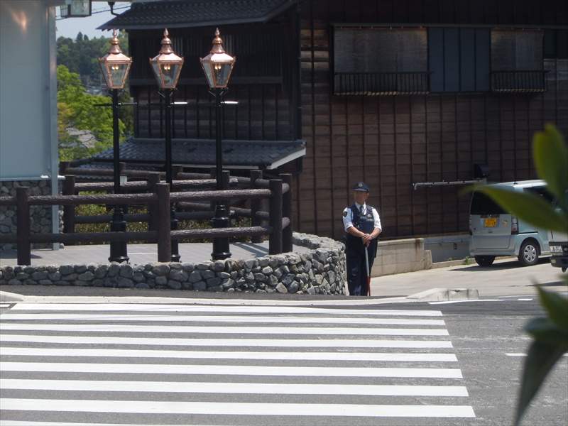 不慣れな歩行者と、不慣れなドライバーが集中する箇所で、見落としやすい一時停止標識を改良することもなく、観光施設である観光案内所とガス館の脇にK官が隠れていて、ドライバーが一時停止を見落とすのを待ってから、ピーッと笛を吹いてその車を停止させ、