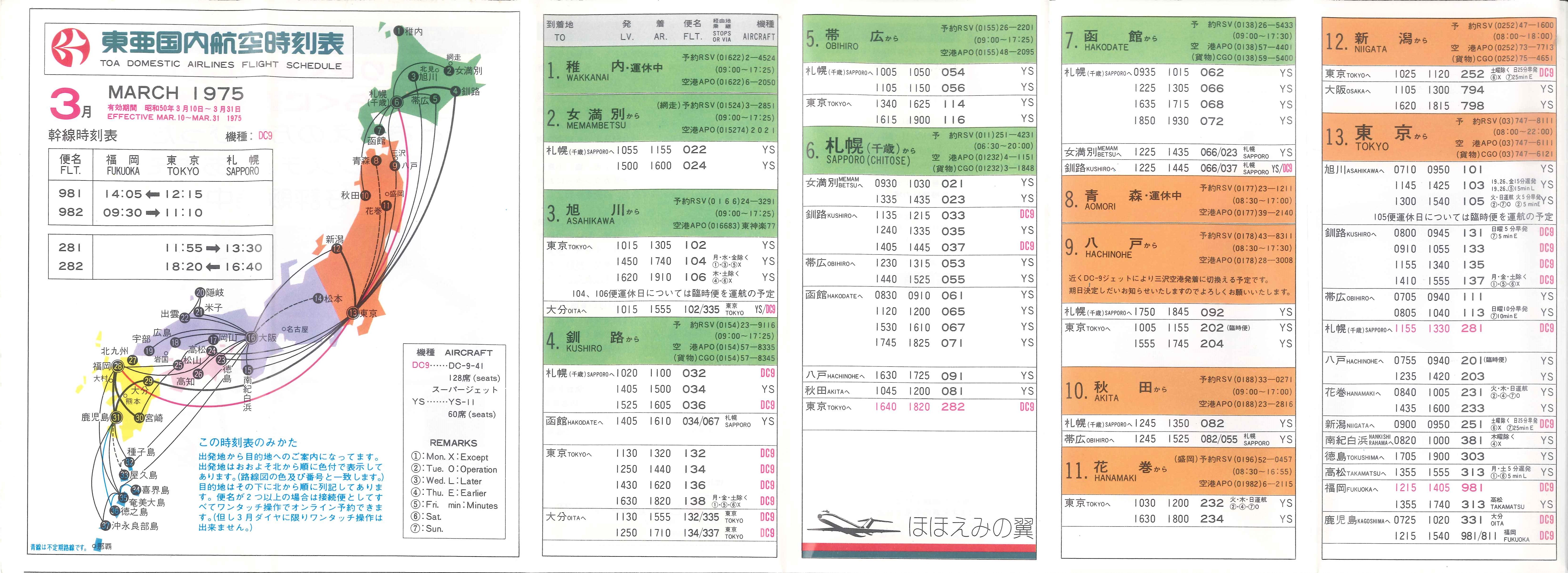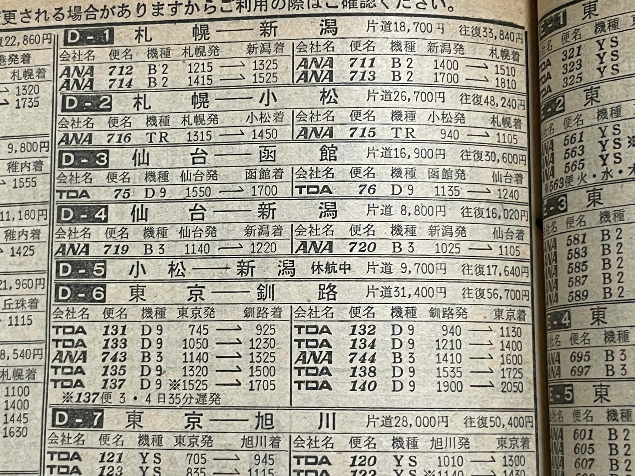 ということを「トキエア仙台便就航か?」というニュースを聞いて考えたのでありますが、昭和の全日空の時刻を見ていて気が付いたのです。