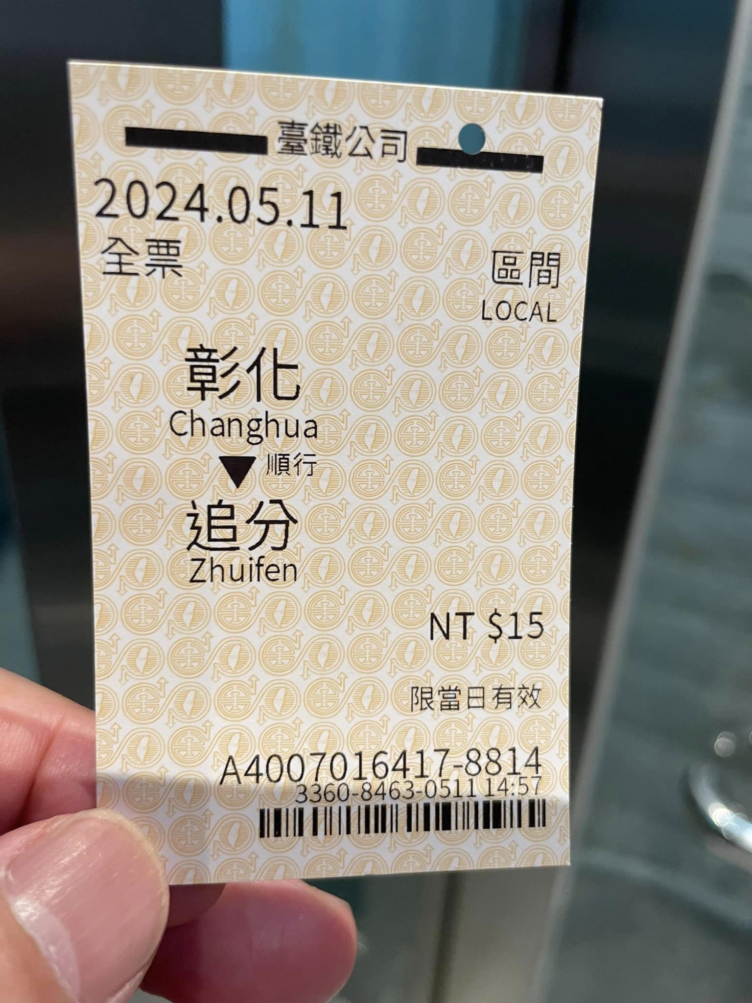 それから比べると、台湾国鉄の初乗り運賃は15元、75円ですから、鉄道がいかに庶民の生活に密着しているかがわかりますね。