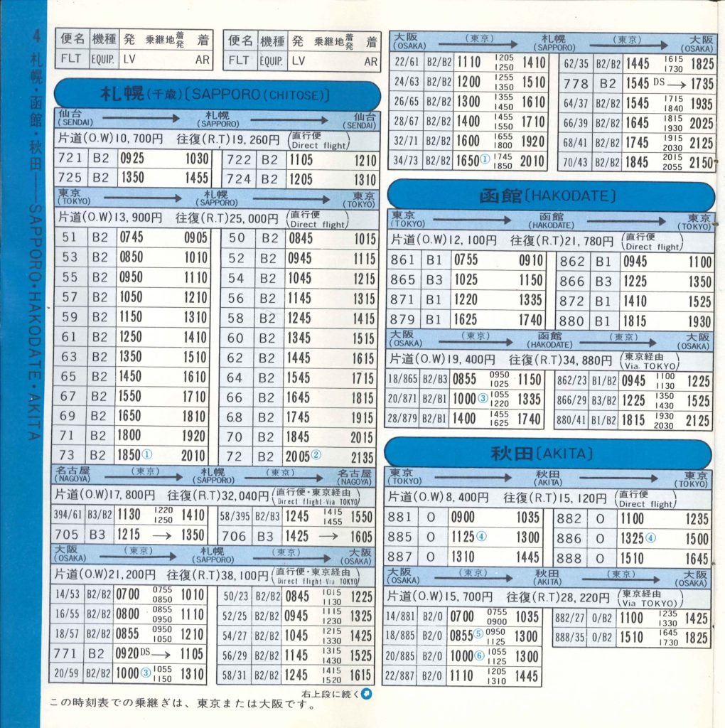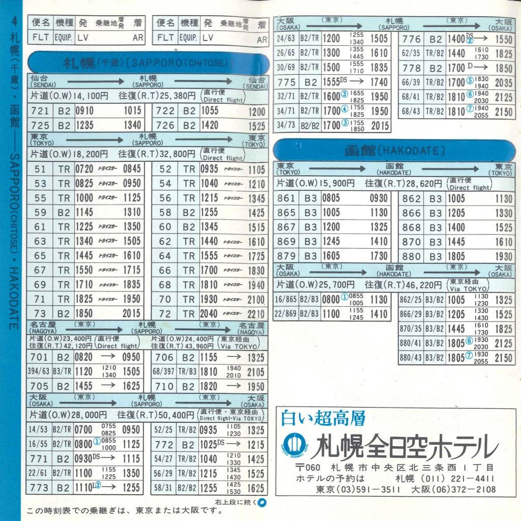 同じ1974年の東京-札幌便。