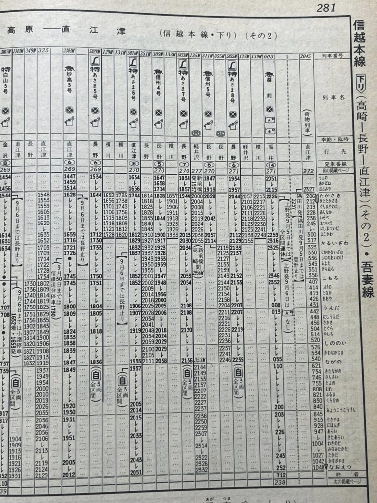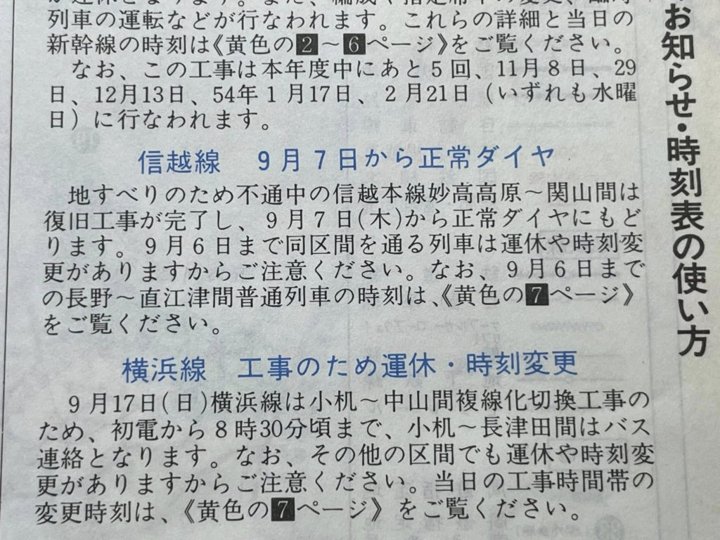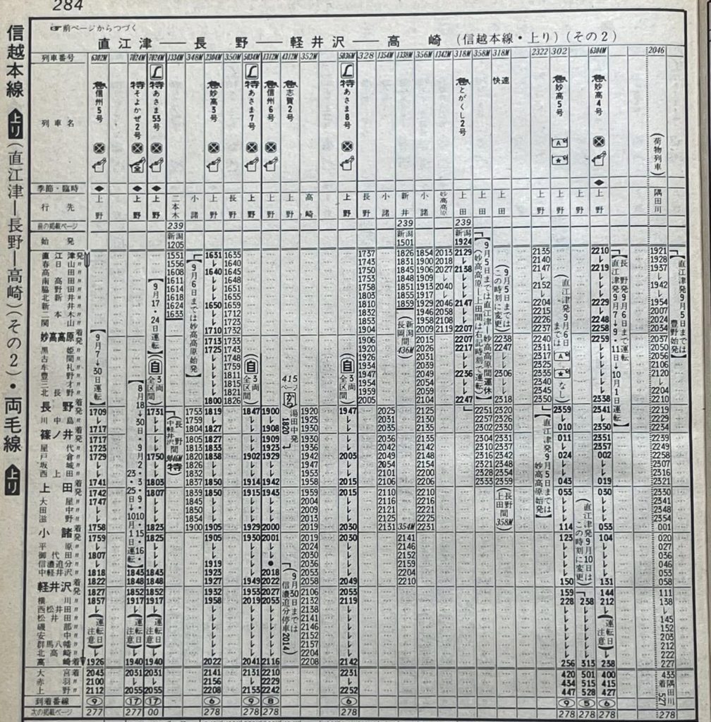 手元に1978年9月号の時刻表がありますので信越本線のところを開いてみました。