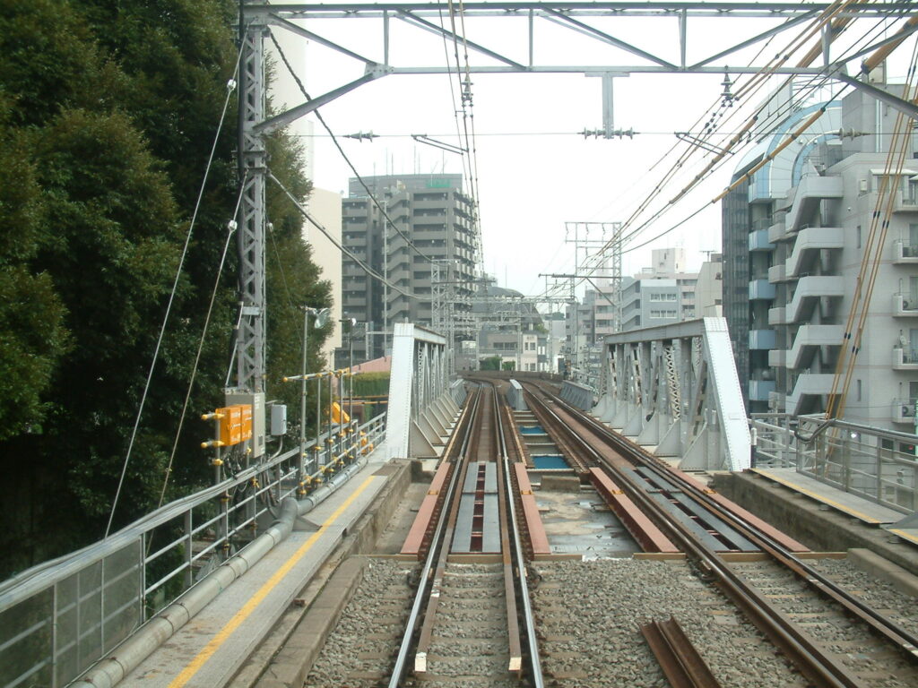 山手線の上をまたぐ東横線の前面展望です。