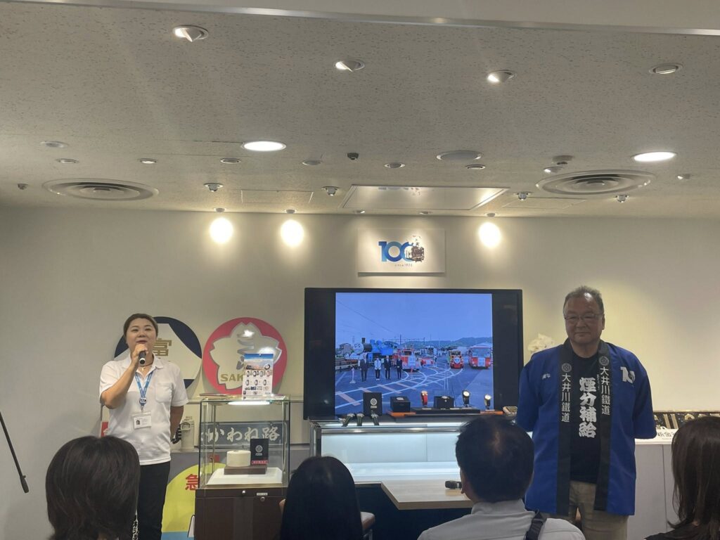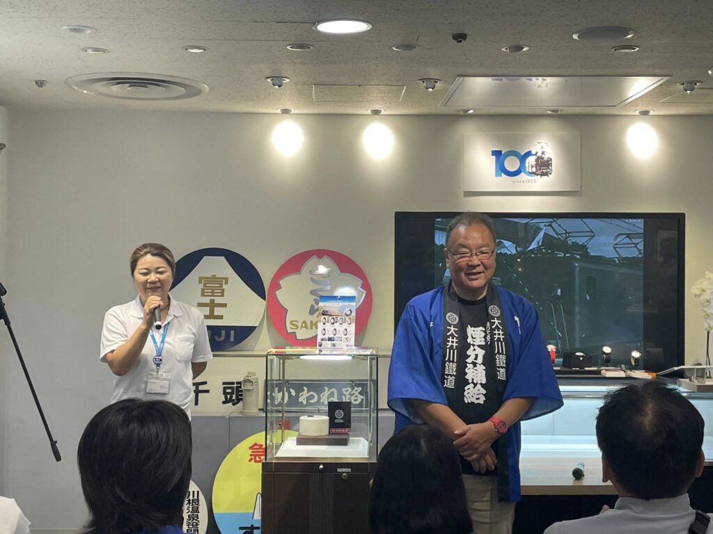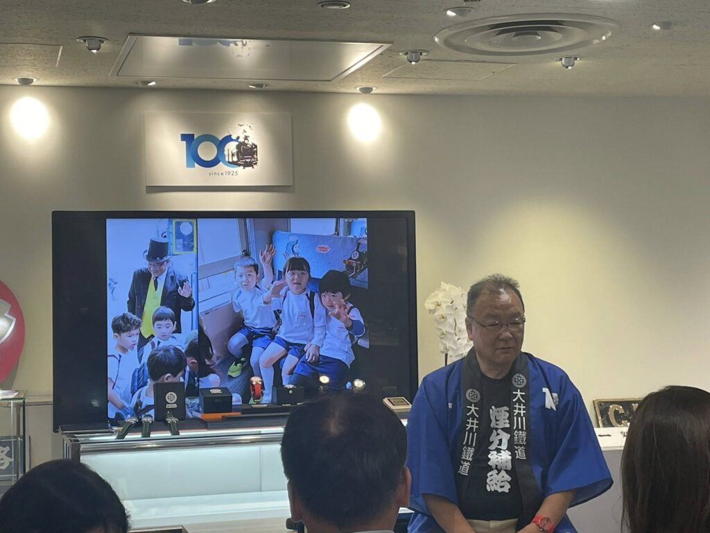 大井川鉄道百周年を記念して、静岡市の宝飾時計専門店のタカラ堂さんが静岡伊勢丹6階にコーナーを設けてくれているもので、百周年記念の時計や100万円の切符などを展示販売していただいております。