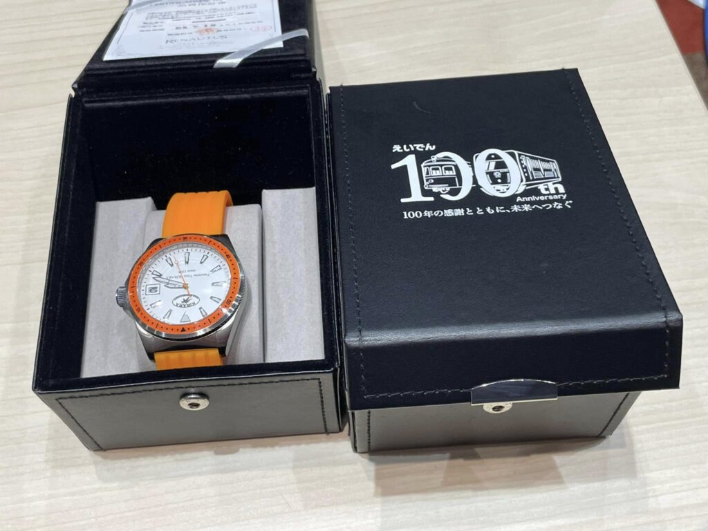 叡山電鉄さんも大鐵と同じく今年100周年ということで、コラボ企画で記念腕時計を作っています。