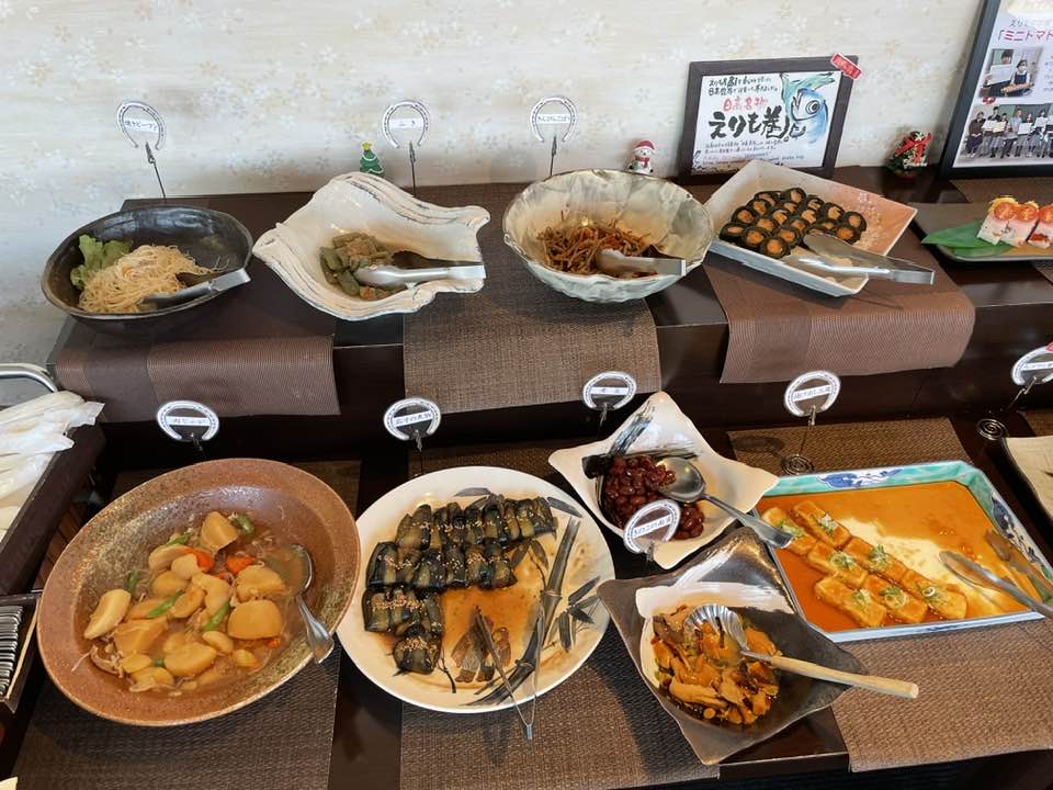 日によっては5種類ぐらいあるのですが、実は焼き魚というのは出すものによっては一番コストがかかる食材ですから、それが3種類もあるということは「北海道の釧路に来た」と思えるわけで、つまりおもてなしが立派なのです。