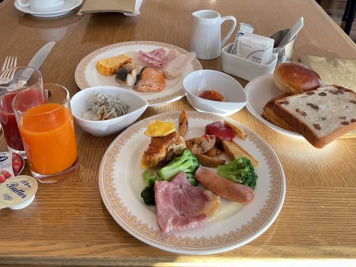 近くのコンビニへ行ってサンドイッチとジュースでも買って来れば、いくら昨今の物価高とは言え100円玉数枚で済んでしまうものですが、ホテルに泊まるというのは非日常感でありますから、そういう時は財布のひもが緩くなるというのが世の常でありまして、「ご朝食どうなさいますか?」とフロントで聞かれれば、「お願いします。」と言ってしまうのも人情なのであります。