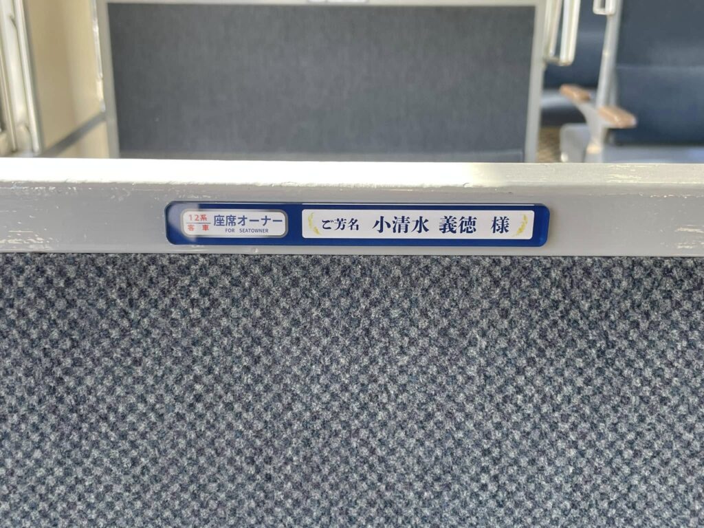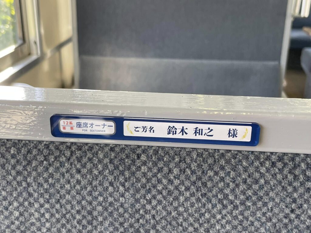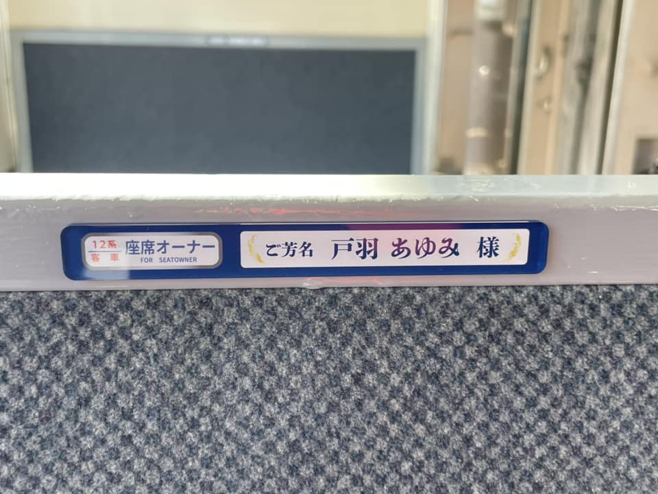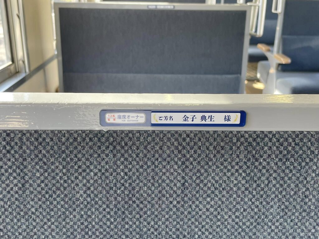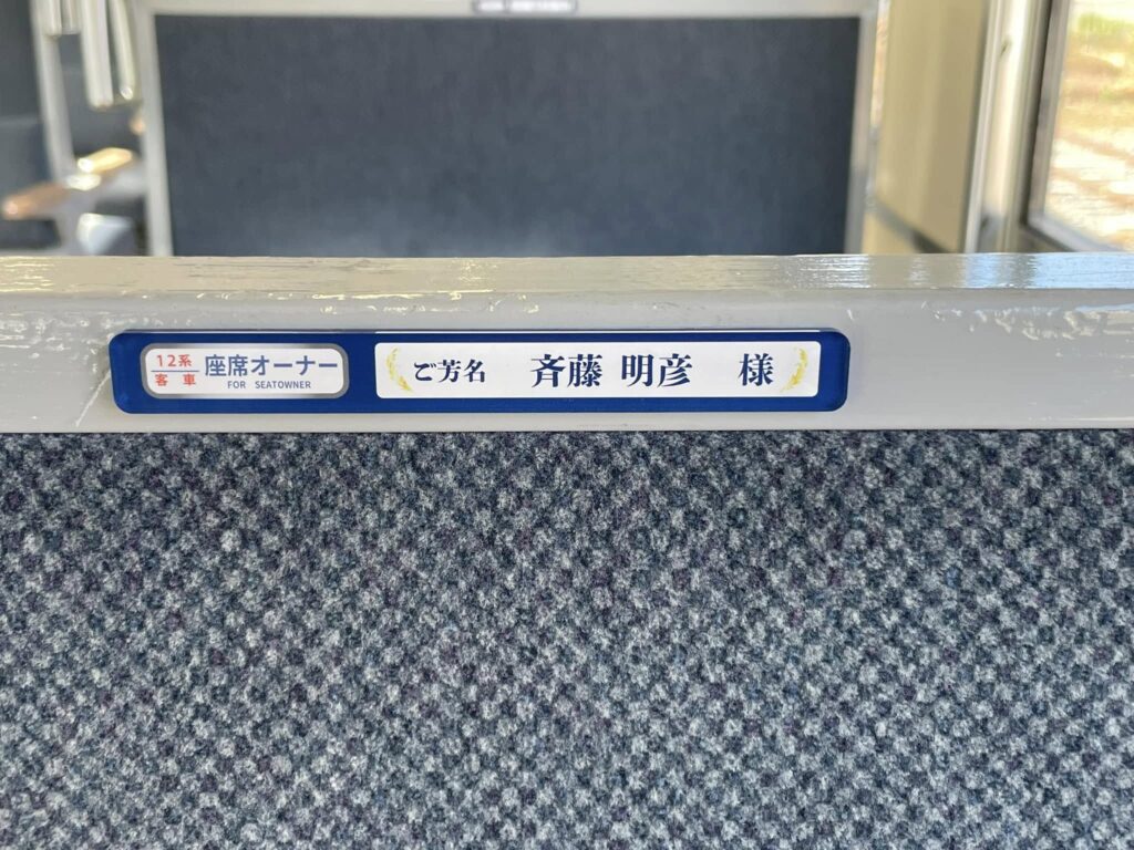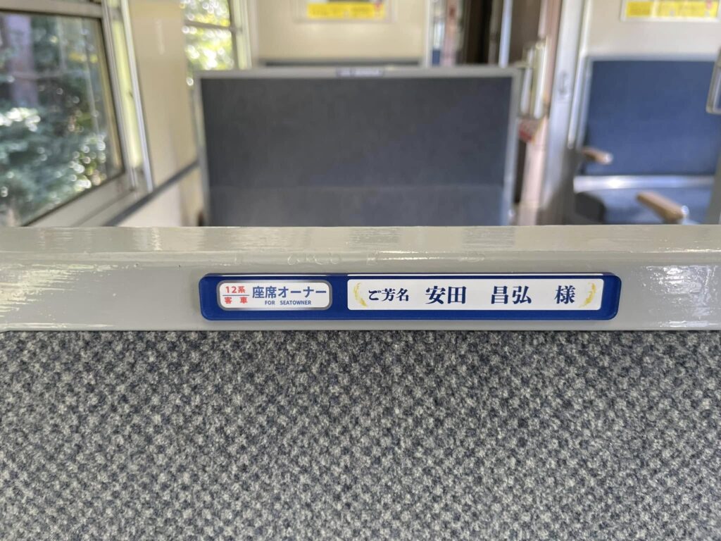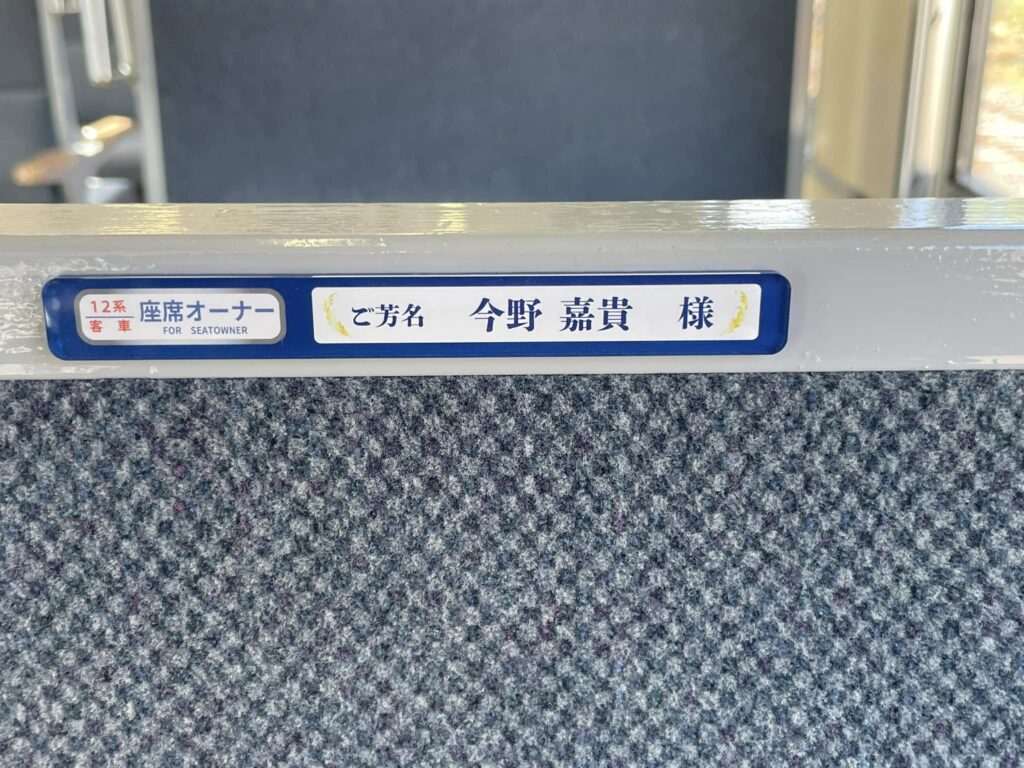 10月末までにお申し込みいただきました座席オーナーの方のお名前プレートを運転開始の16日までに客車内に掲示させていただきました。