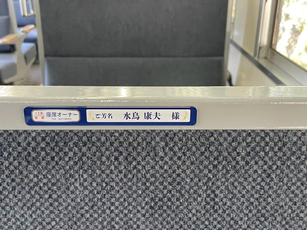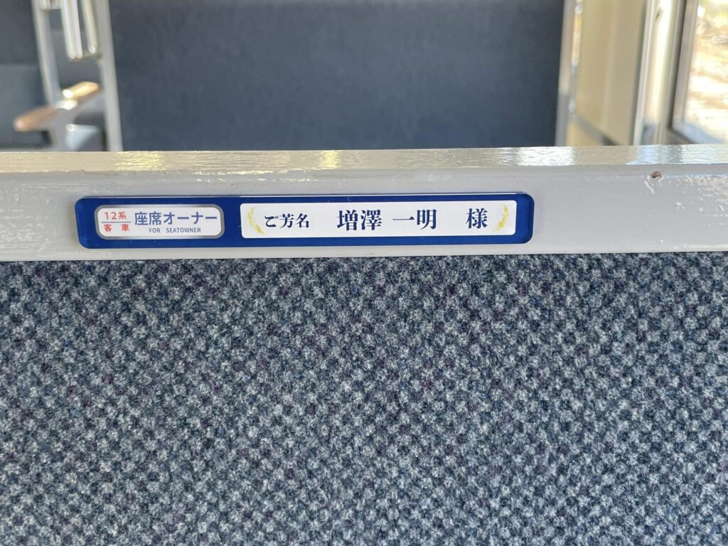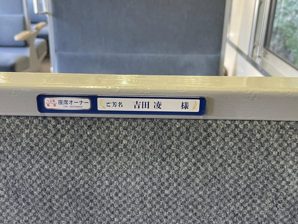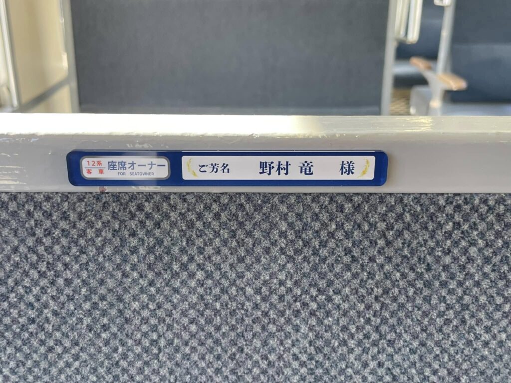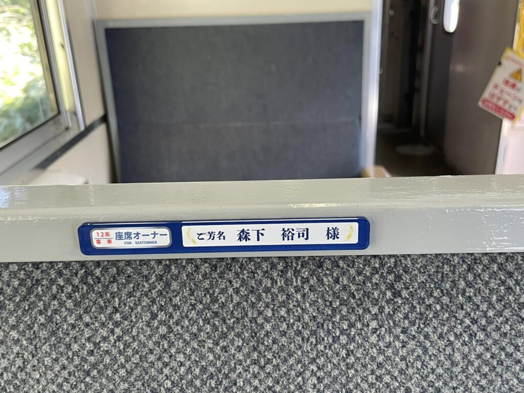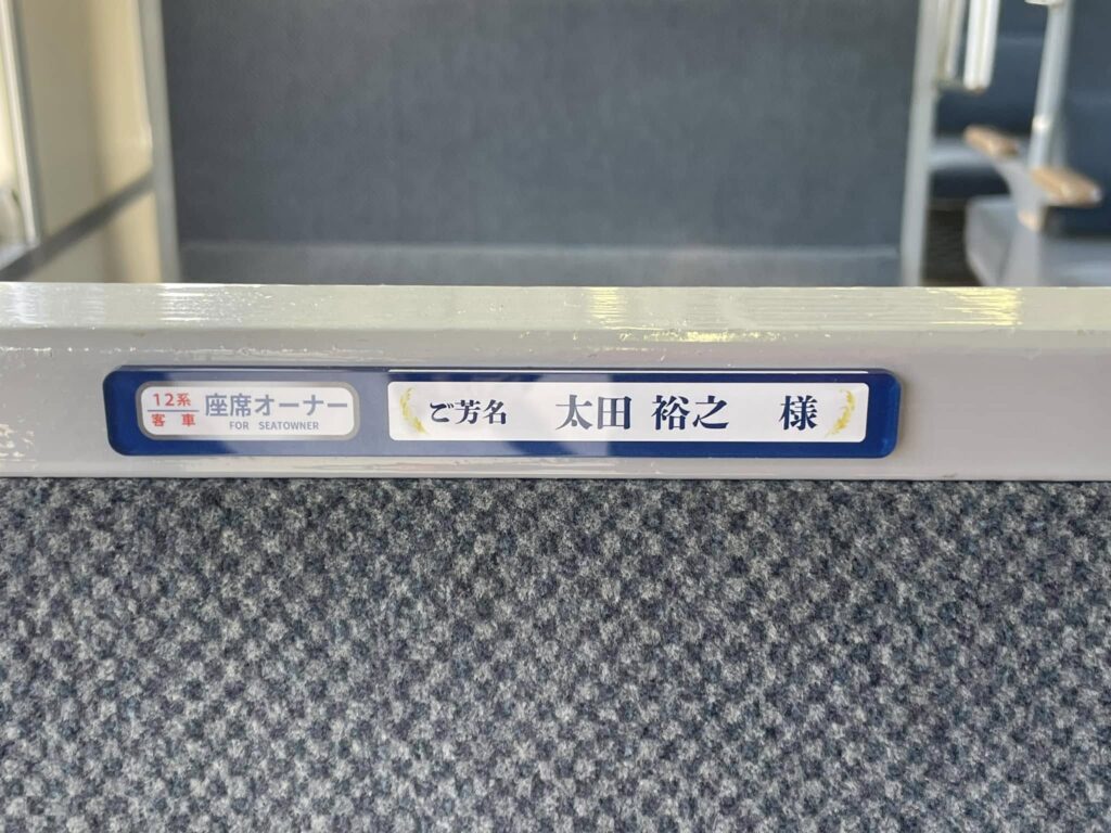 10月末までにお申し込みいただきました座席オーナーの方のお名前プレートを運転開始の16日までに客車内に掲示させていただきました。