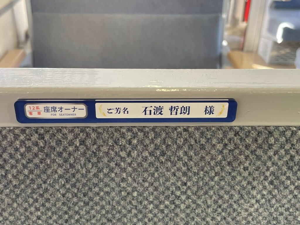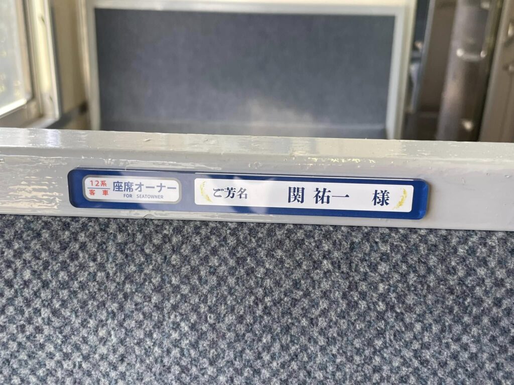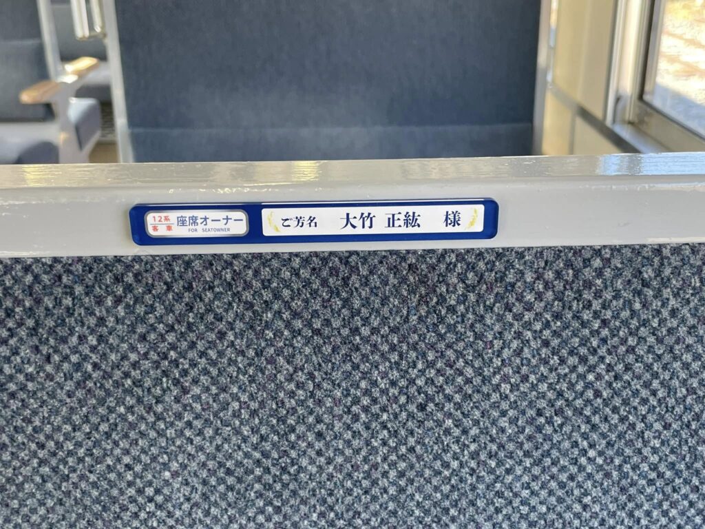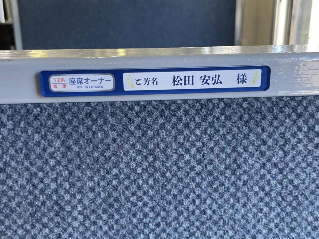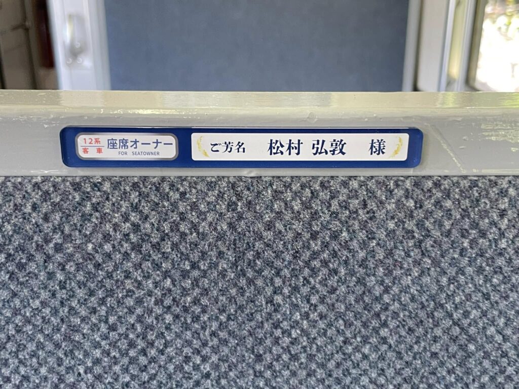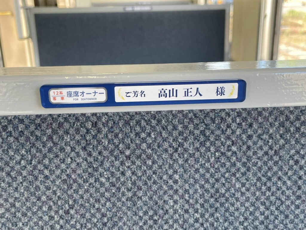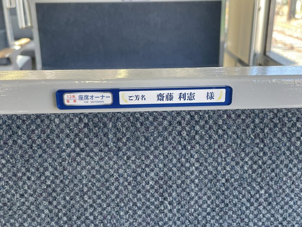 10月末までにお申し込みいただきました座席オーナーの方のお名前プレートを運転開始の16日までに客車内に掲示させていただきました。