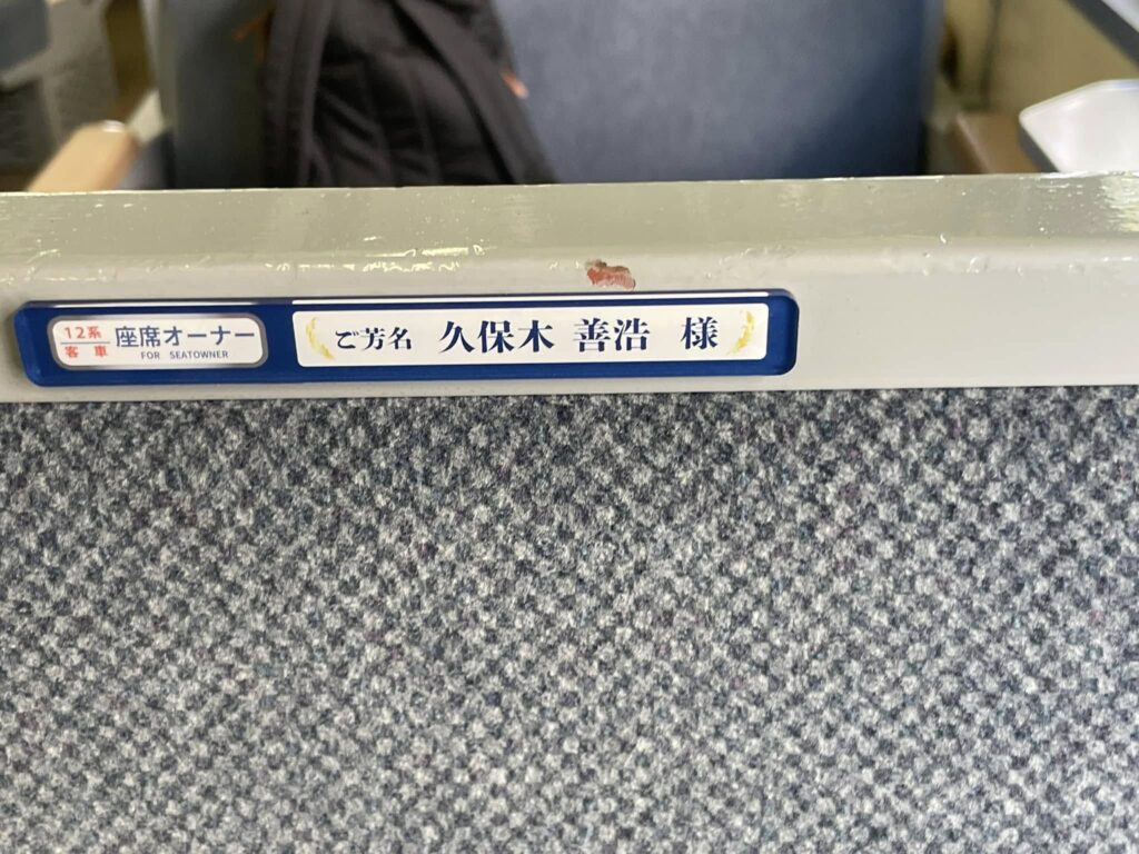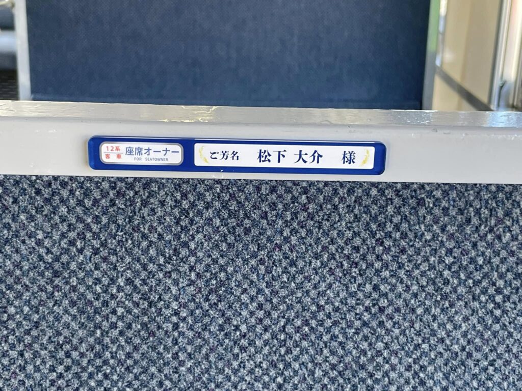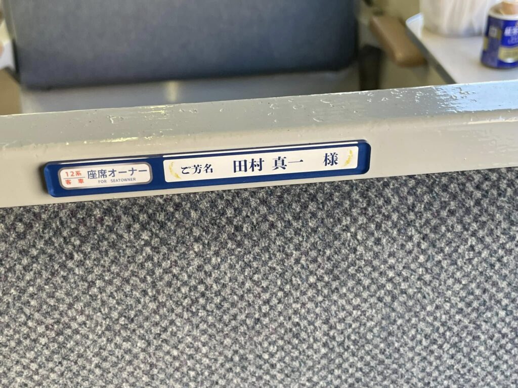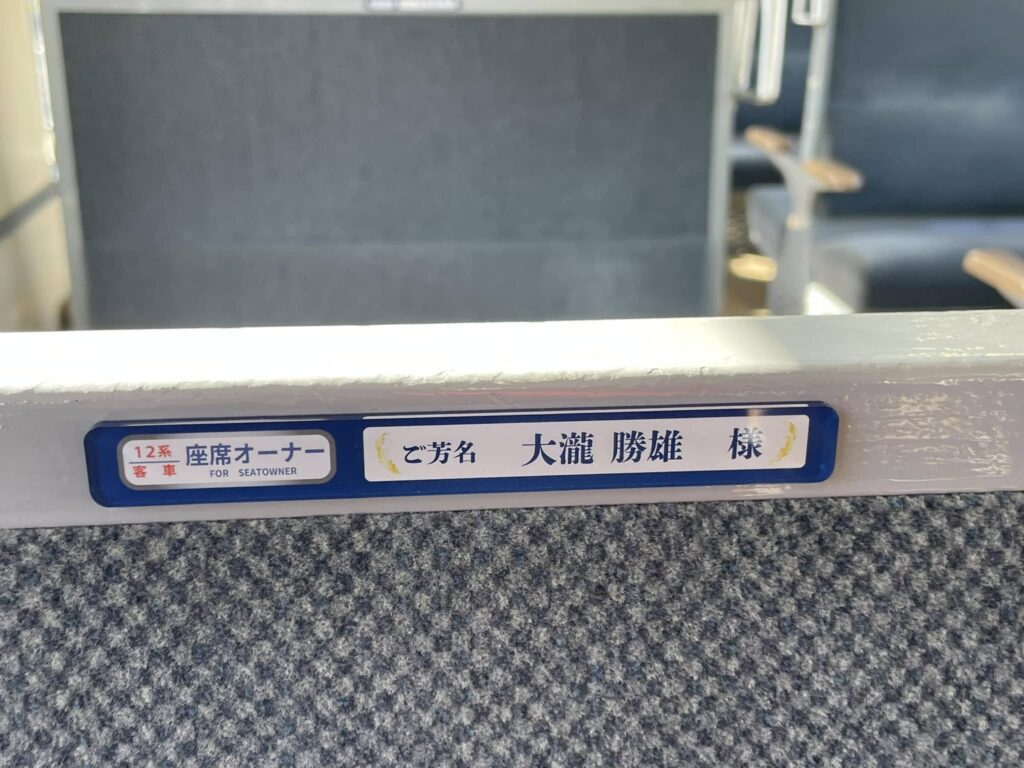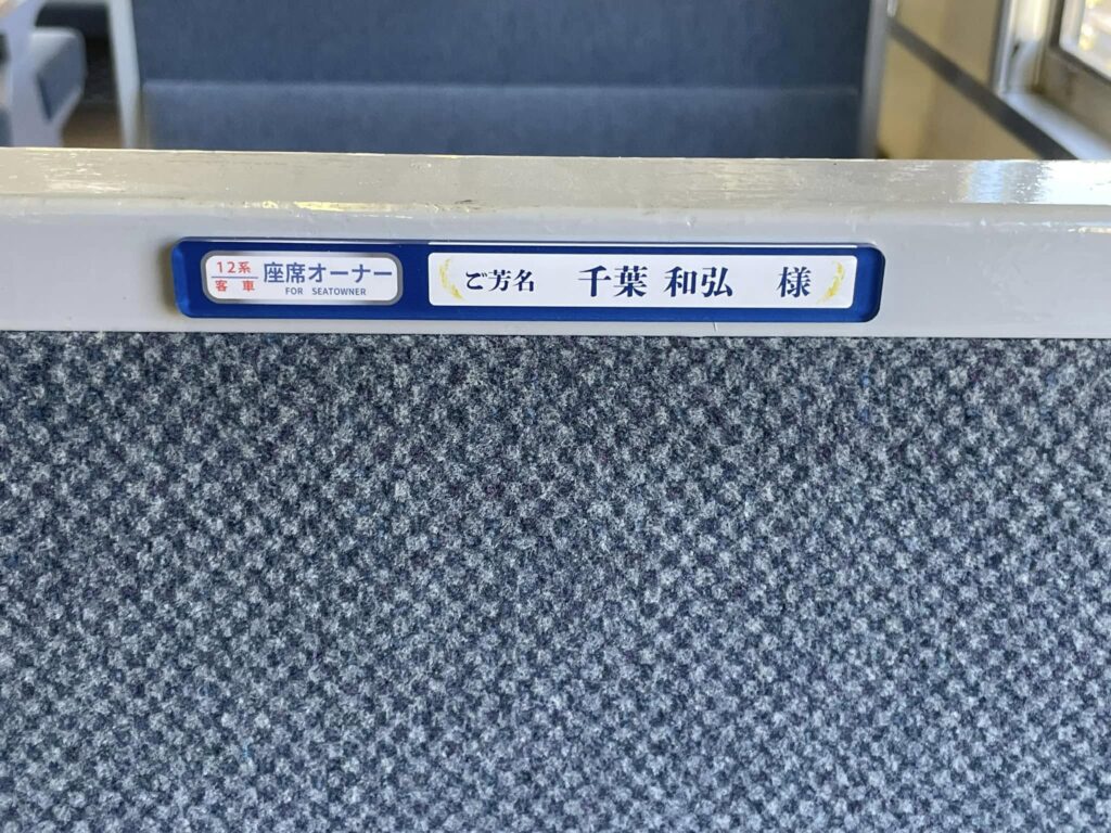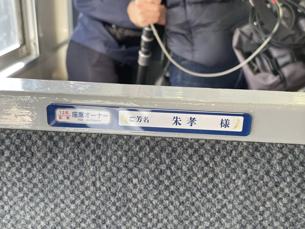 10月末までにお申し込みいただきました座席オーナーの方のお名前プレートを運転開始の16日までに客車内に掲示させていただきました。