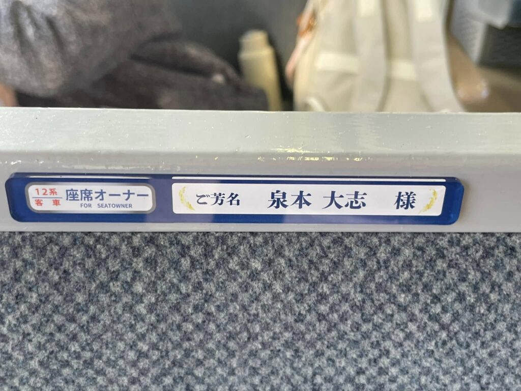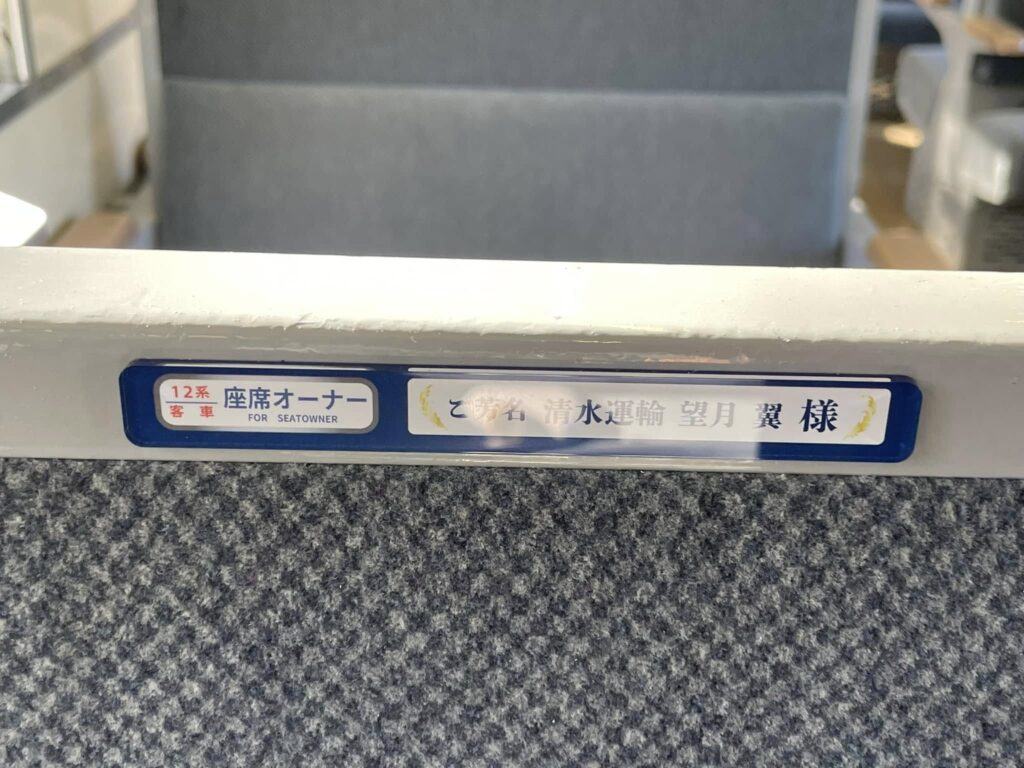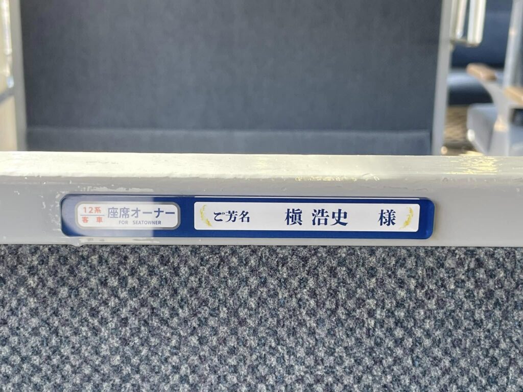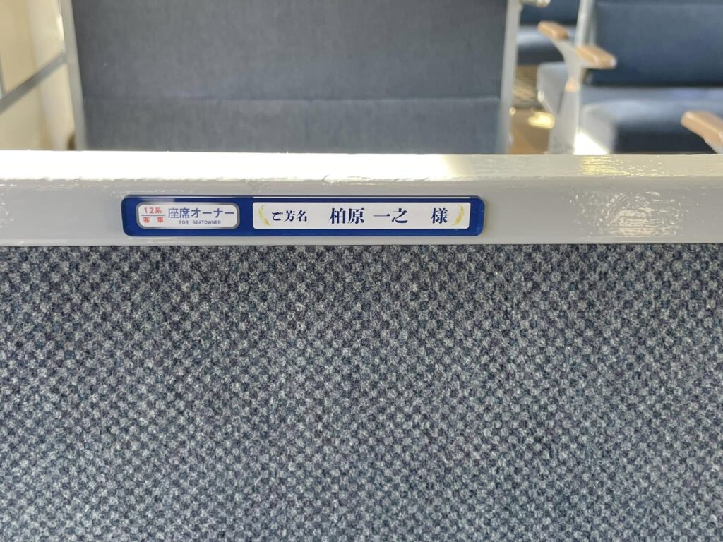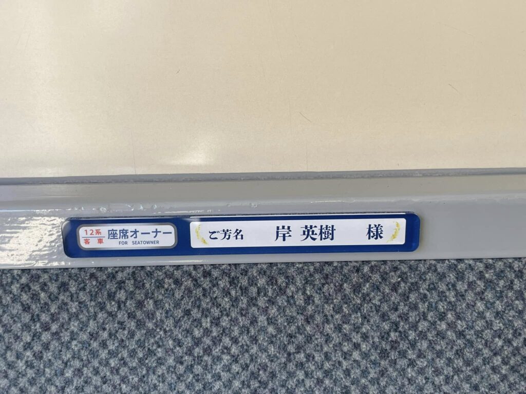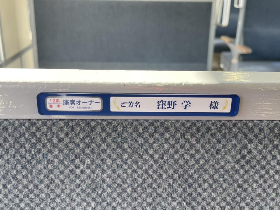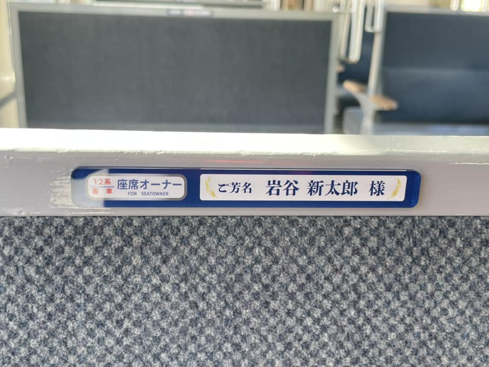 早速ご乗車いただきました皆様もいらっしゃると思いますが、なかなか来ることができない皆様方へ、ご報告を兼ねまして座席に掲示させていただきましたプレートの写真をお届けいたします。