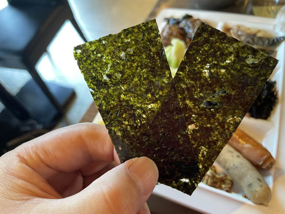都心のちょっと名前の通ったホテルだと、和紙のような紙に包まれた焼きのりが厳かに出てくることがありますけど、そういう時は3枚かな。