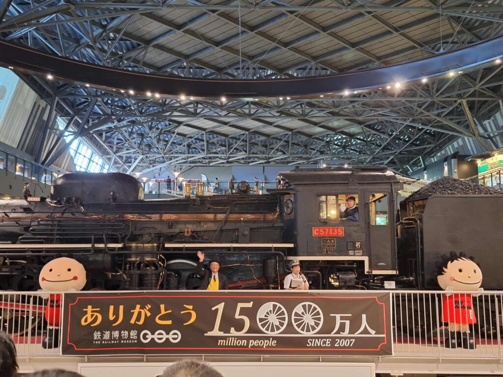 50年前の今日、最後の列車をけん引した機関車C57-135は今大宮の鉄道博物館に保存されていて、今の私はその機関車の前でこんなイベントをさせていただいているのですから、人生は不思議ですね。