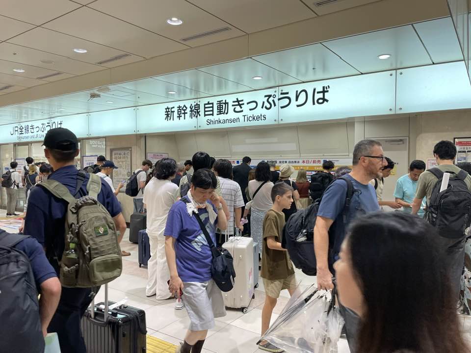 新幹線が到着すると降りてくる人の2人に1人は外国人でした。