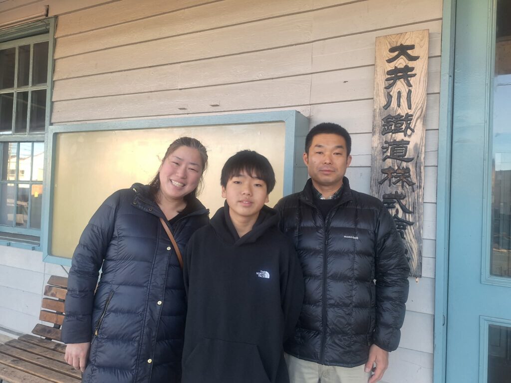朝、列車が到着した時にお迎えに来ていたご両親とパチリ。