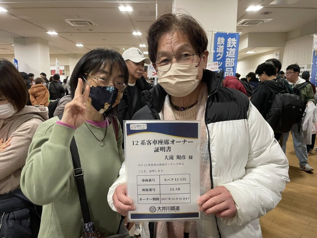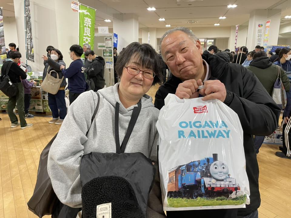 くま川鉄道の助っ人に来ていただいているこの方が明日12日がお誕生日で、なんと60歳になられるということで、大井川鐵道の大人気商品である暖てん(暖かい半纏)をプレゼントいたしました。