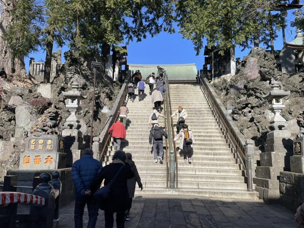 私は子供のころから毎年欠かさずに成田山へ初詣に来ていますが、昔、私の周りの大人たちが、「この急な階段を登れなくなったら人生おしまいですね。」と言っていたことを思い出します。