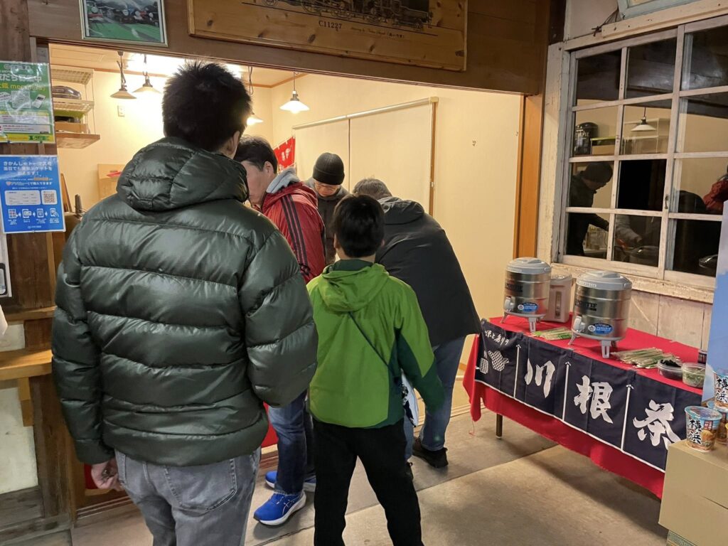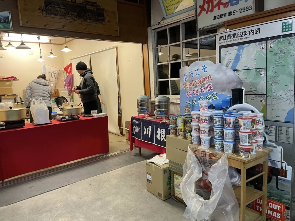 夜鳴き蕎麦タイムは家山駅の待合室で。