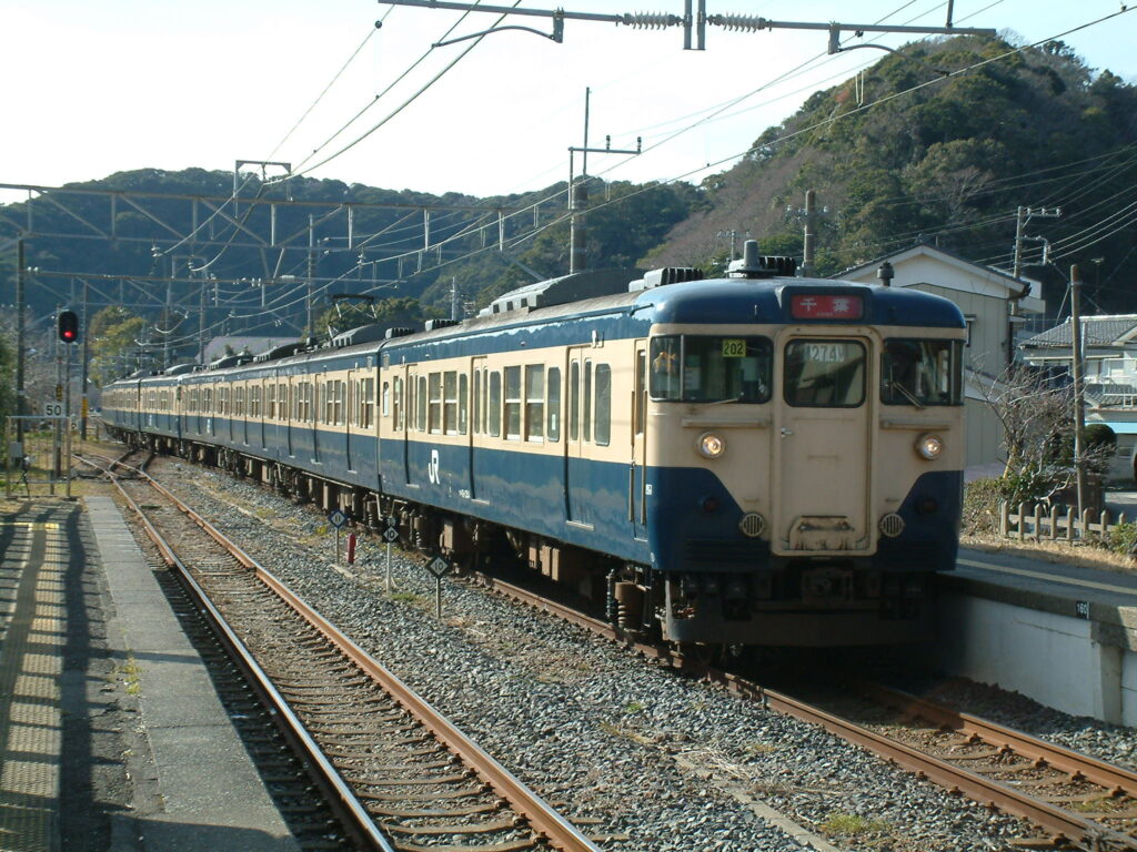 急行「なぎさ」を撮影した同じ上総興津で113系の千葉行き普通列車です。