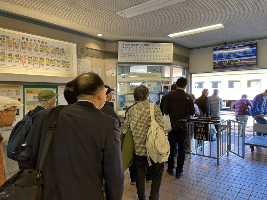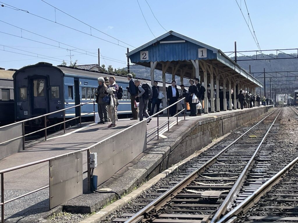 今日は早稲田大学鉄道研究会「稲門会」の団体の皆様方122名様がEL急行の2両を号車貸切(※)でご乗車されました。