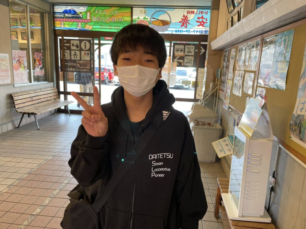 と、改札口で見かけたのは地元の中学生君。
