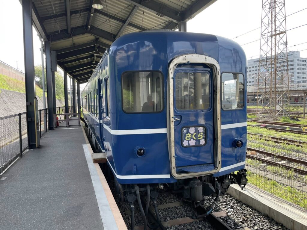 会場ではC60がけん引するブルートレイン「さくら」の機関車の次位に連結された20系客車の車掌室の窓を開けて録音された昭和40年の音声が流れているのです。