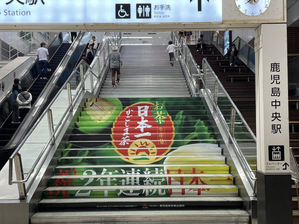 新幹線が発着する鹿児島中央駅のメインの階段にこんな絵が描かれています。